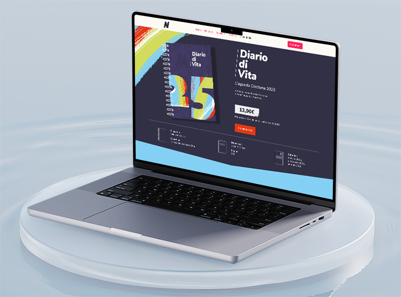 È stata creata una landing page (www.natibrondani.it/diariodivita) e inserzioni carosello per i social media, utilizzando lo stesso stile grafico. L’obiettivo era far conoscere l’agenda al pubblico cristiano e semplificare l’ordinazione tramite un modulo di richiesta online.